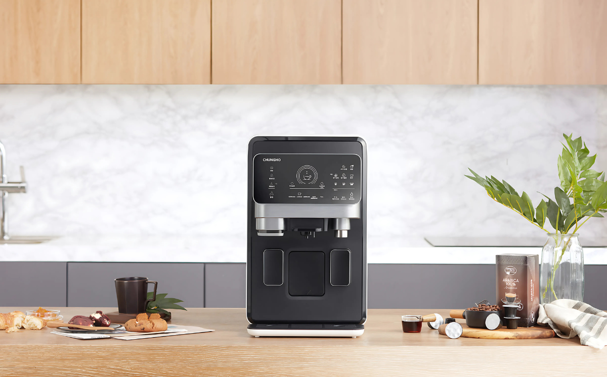 Máy lọc nước ChungHo ESPRE CAFFÉ nhập khẩu nguyên chiếc từ Hàn Quốc là sự kết hợp hoàn hảo giữa tiện nghi và đẳng cấp. Không chỉ lọc và cấp nước RO tinh khiết qua 3 mức nhiệt nóng/lạnh/nguội, thiết bị còn tiên phong tích hợp chức năng làm đá viên và pha cà phê thơm ngon.